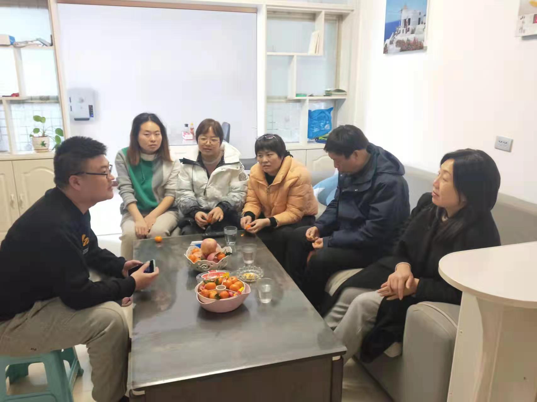 與員工家屬進(jìn)行交談